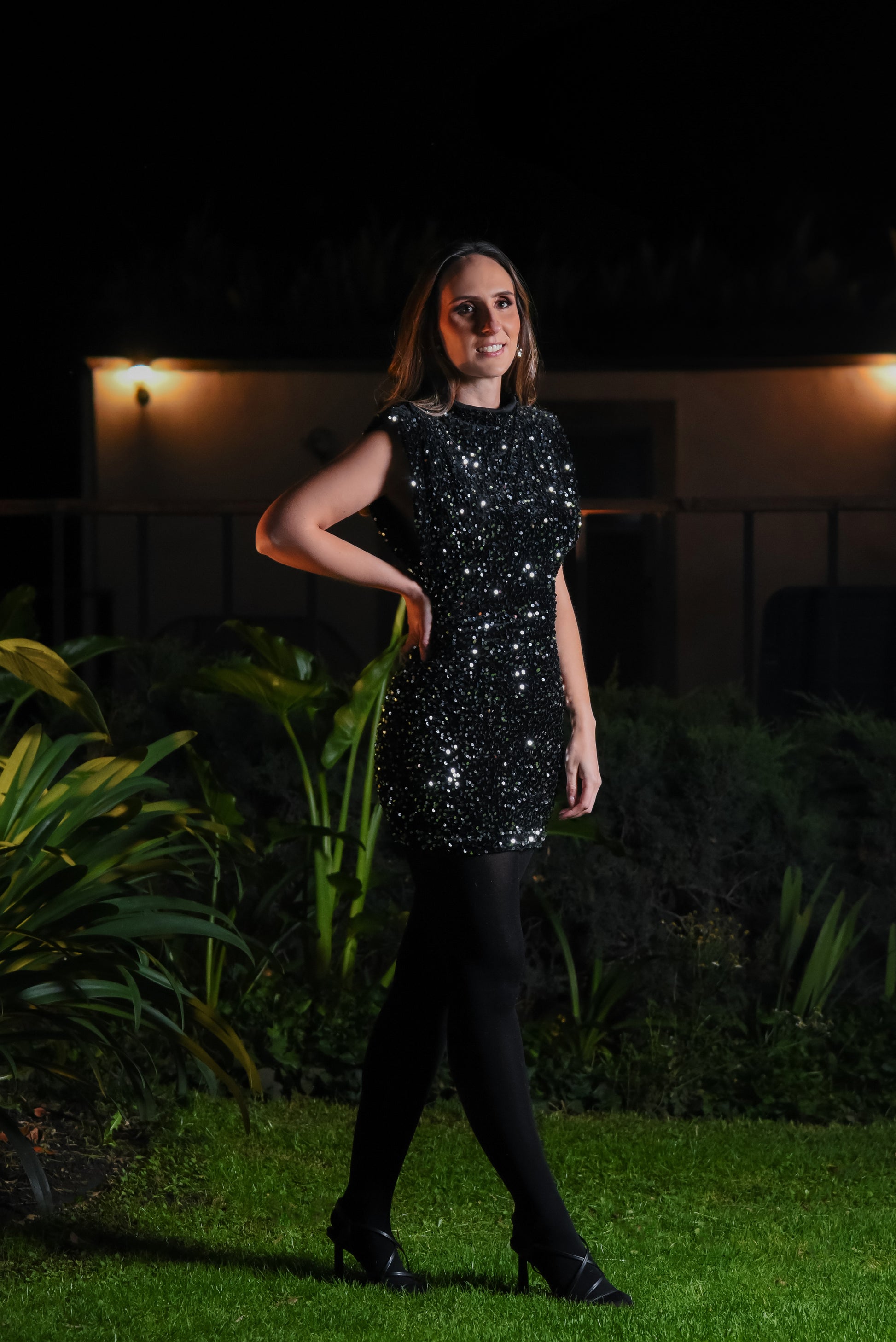 Vestido corto de terciopelo y lentejuela